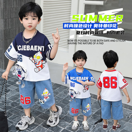 胖胖虎网供&奥特曼飞机拼接棒球服套装
