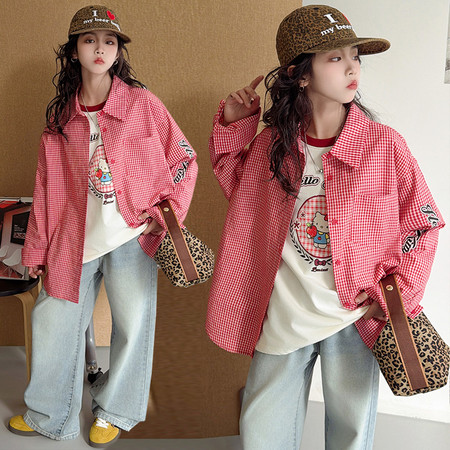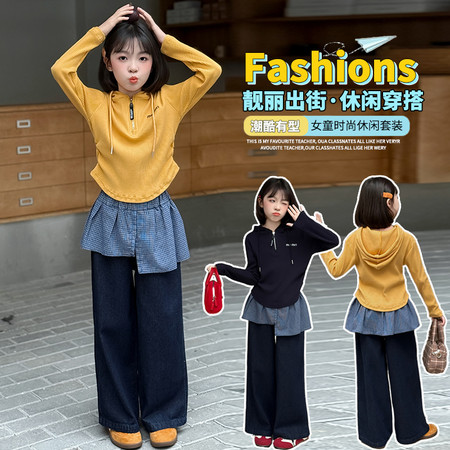 巴啦小妞&2565连帽开衫格子屁连裤套装