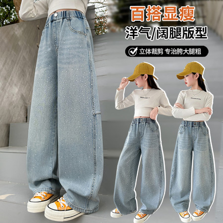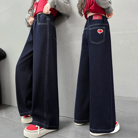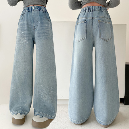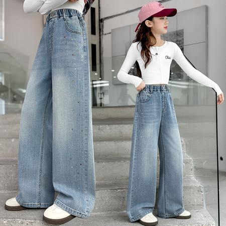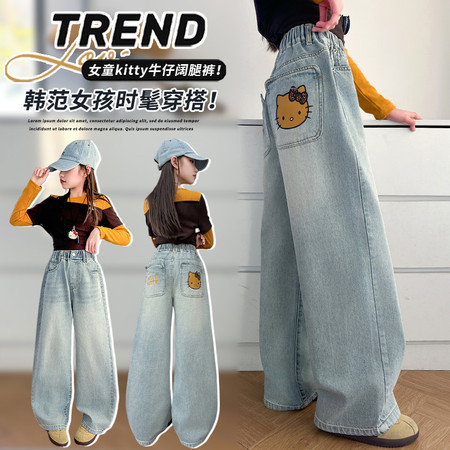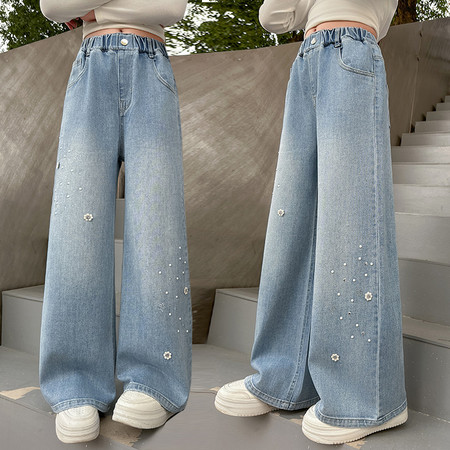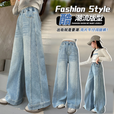 豪涵童装&春款拼接弯刀牛仔阔腿裤2703