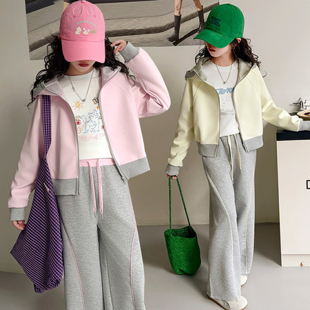 巴啦小妞&2567拼色连帽拉链杉小外套套装