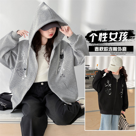 邻家果果&2606卡通绣花连帽外套