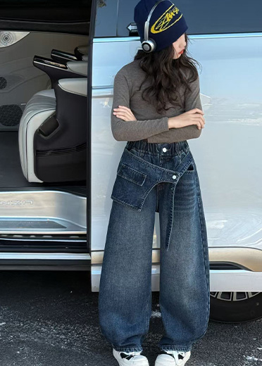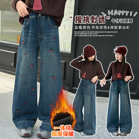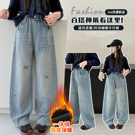 ¥48分销数 40+时尚小铺&2578现货2025冬款金边噢粒绒加厚中大童牛仔裤新【闪】